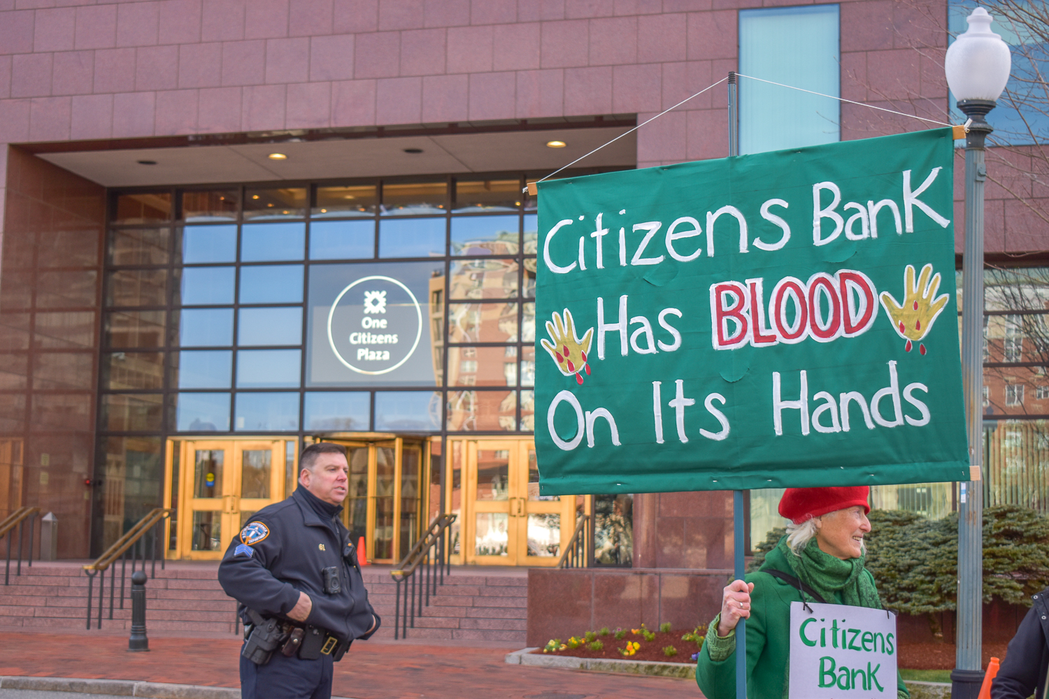 “We are here today to protest the terror and abuse inflicted by ICE across the nation,” said Julie Craven, an organizer with the Citizens Banking Coalition to End ICE. She emphasized that Citizens Bank is the “financial engine” behind these activities.