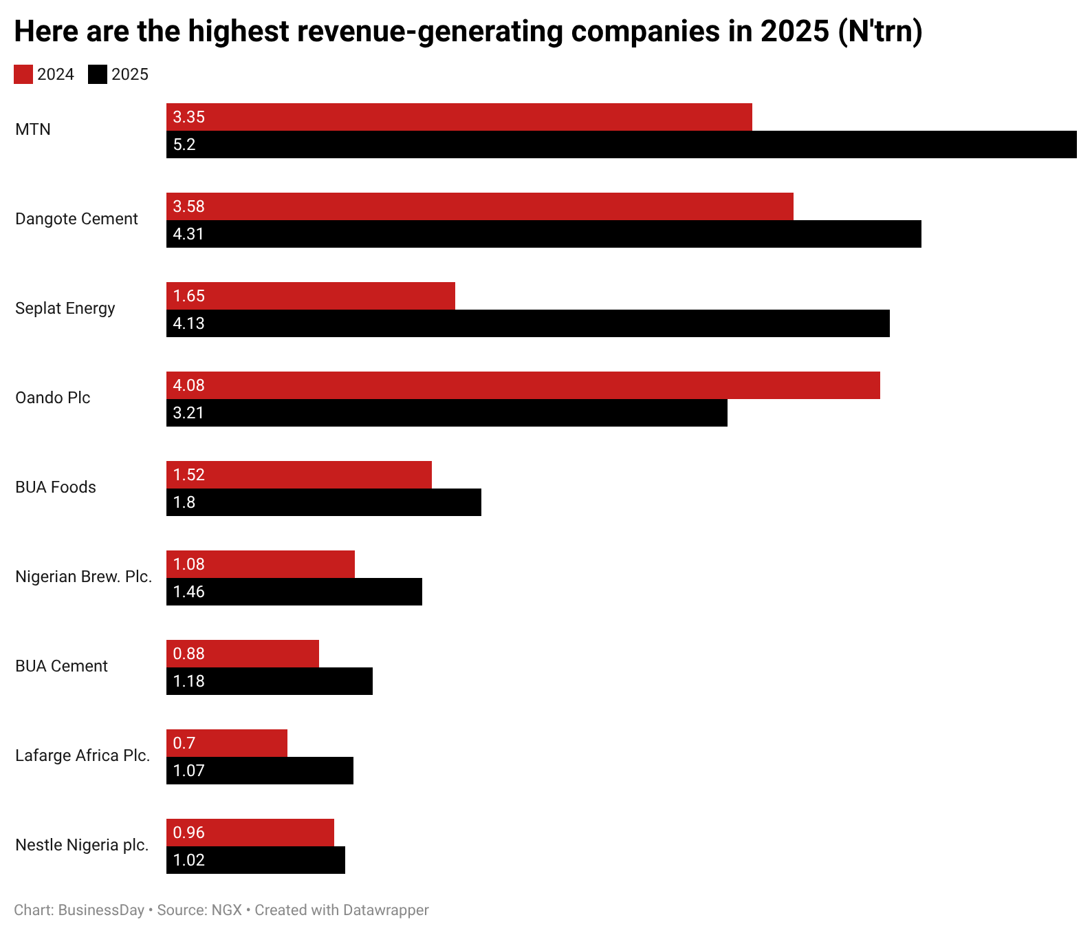 These companies now join the ranks of established giants like MTN Nigeria, which leads with a revenue of N5.2 trillion, and Dangote Cement, with N4.31 trillion, solidifying its position as Africa’s top cement producer. Seplat Energy continues to be a strong competitor as well, reporting N4.13 trillion in revenue, bolstered by increased crude oil production and favorable pricing in the energy sector.