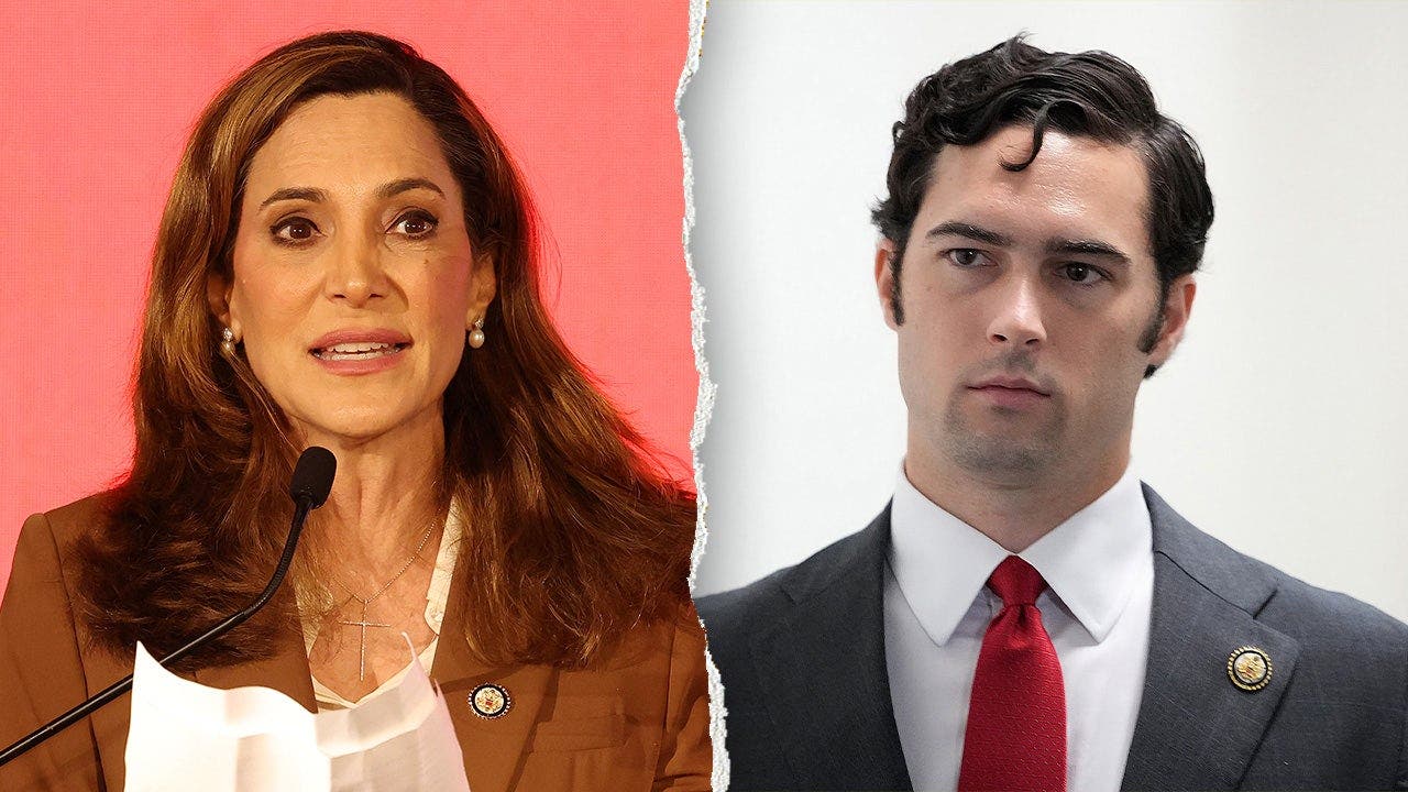 Rep. Maria Elvira Salazar (R-Fla., left) seeks Trump’s support for the Dignity Act, while Rep. Brandon Gill (R-Texas) opposes it, claiming it contradicts Trump’s immigration agenda. (Alexander Tamargo/Getty Images for Latino Wall Street, Kevin Dietsch/Getty Images)