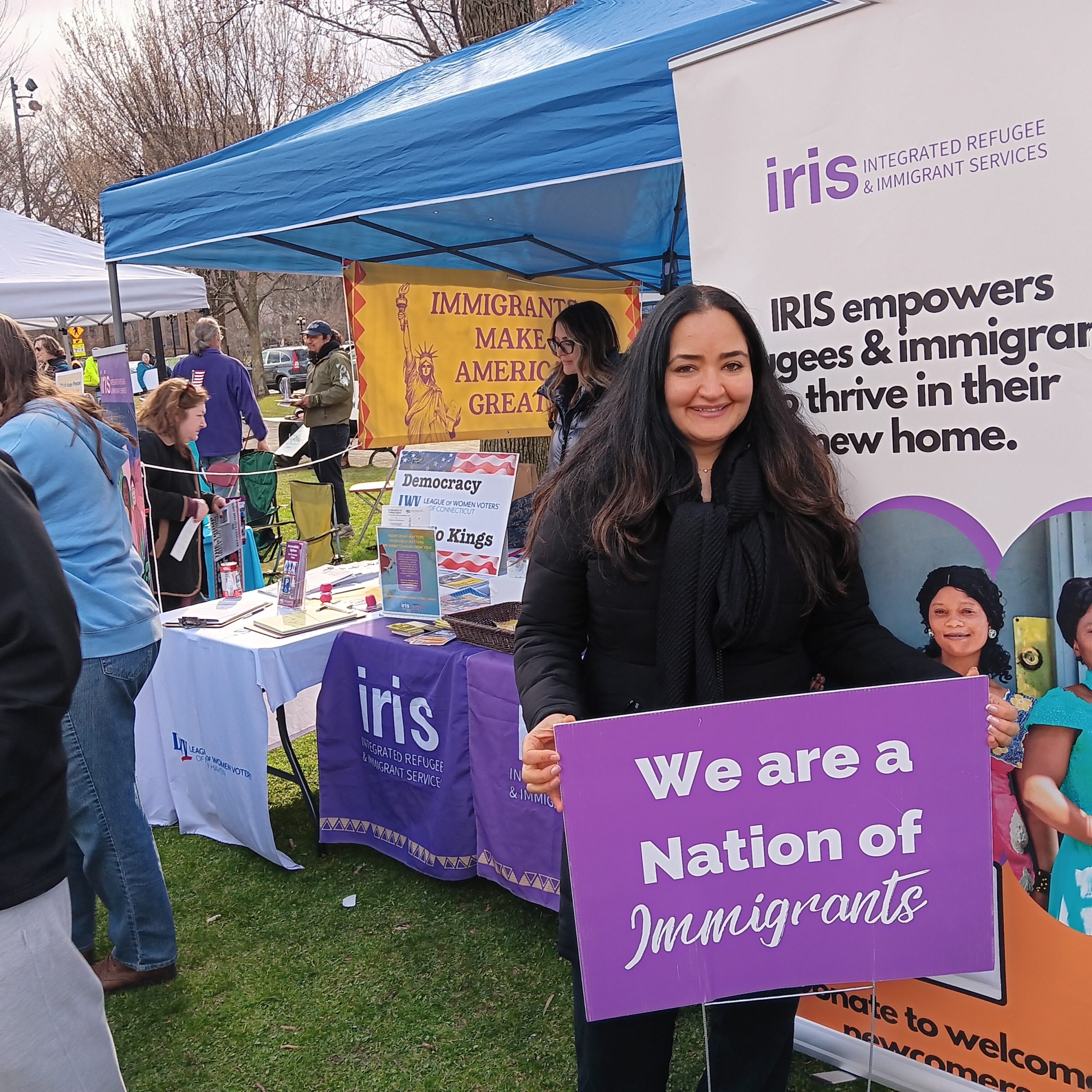 On a recent Saturday, the No Kings rally on the Green served as a backdrop for a collection of immigrant success stories, including Rona’s. Under a purple tent, IRIS staff recorded personal narratives, sharing them with the League of Women Voters. Katie Lowder, IRIS Community Engagement Director, emphasized the significance of these stories, stating that they represent the diverse tapestry of immigrant experiences that often go overlooked.